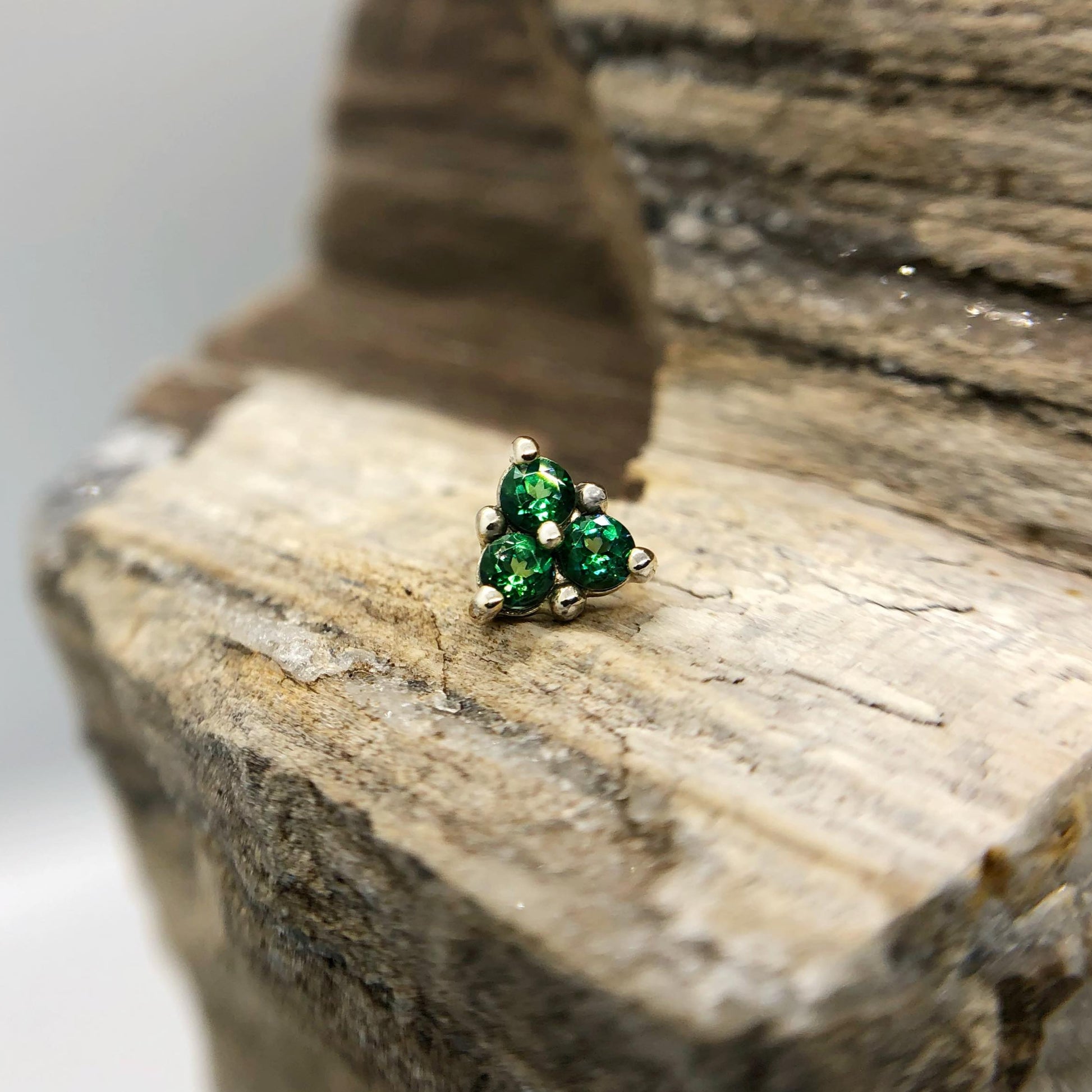 A prong-set gemstone of your choice, available in 2mm, 2.5mm, and 3mm sizes.