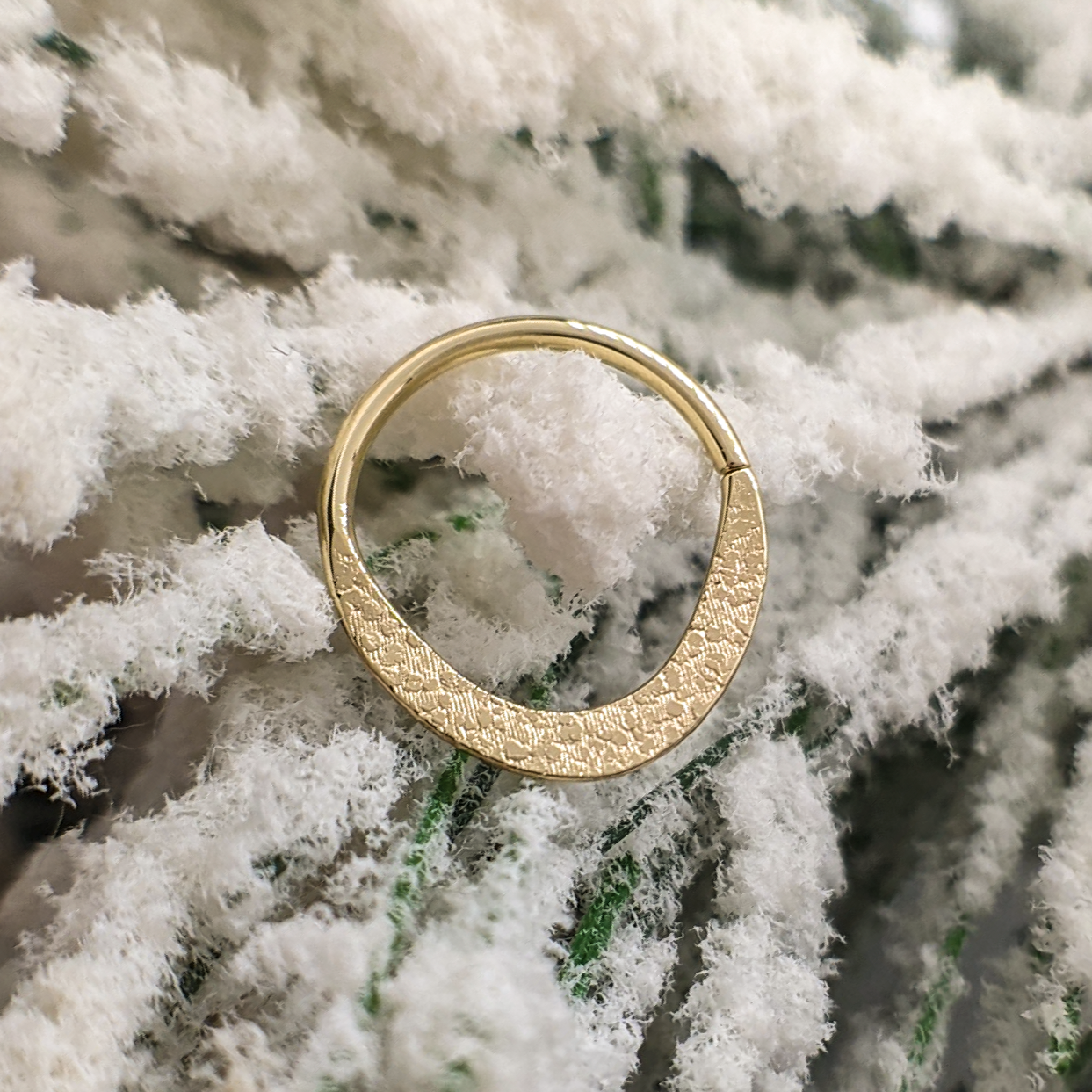 One side of this seamless ring is smooth, while the other has a lovely, organic texture to give you two ways to wear this unique piece.